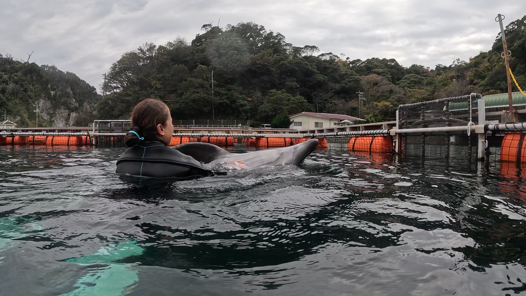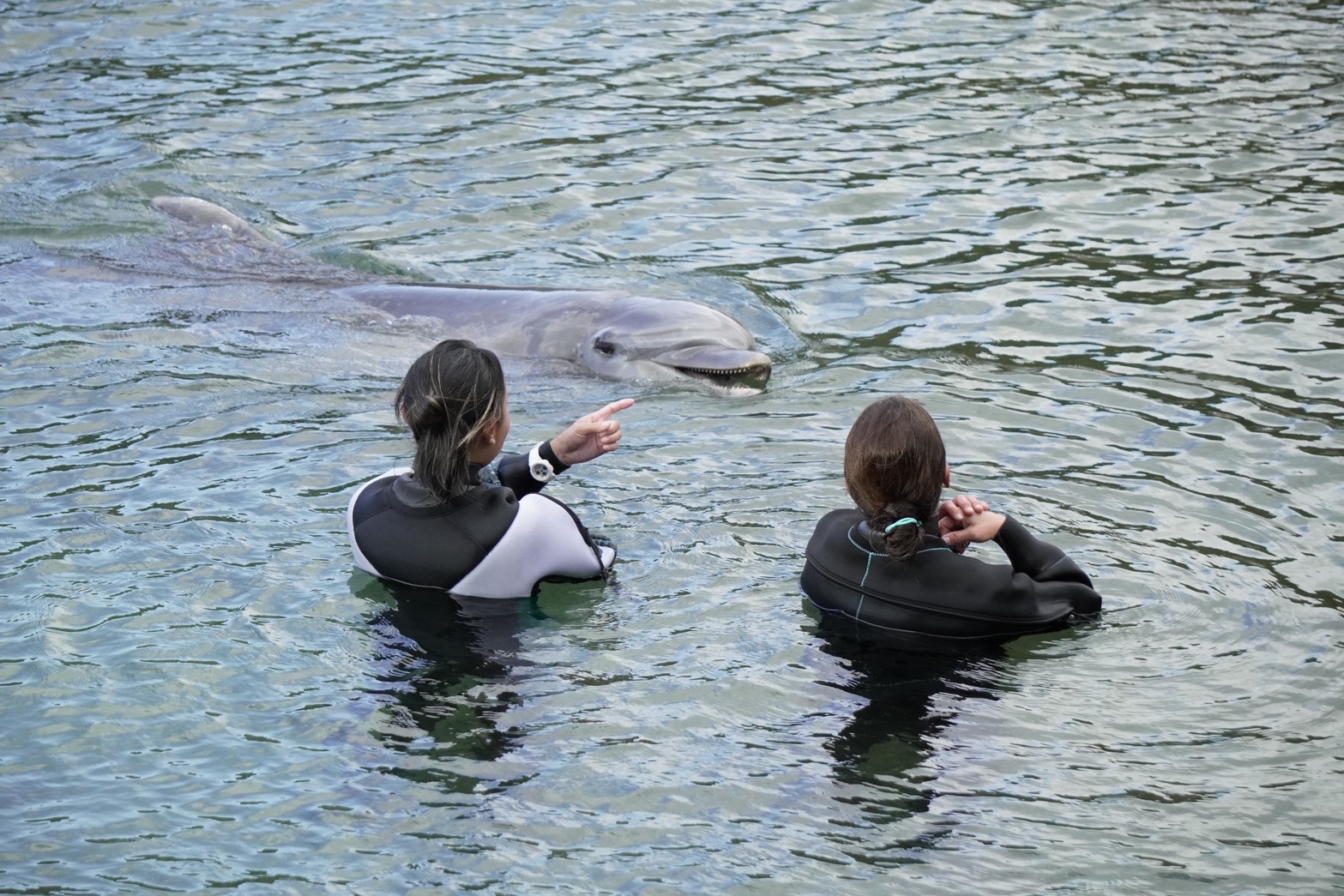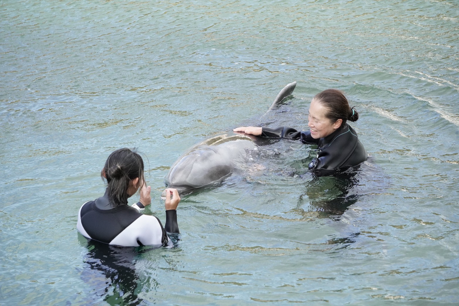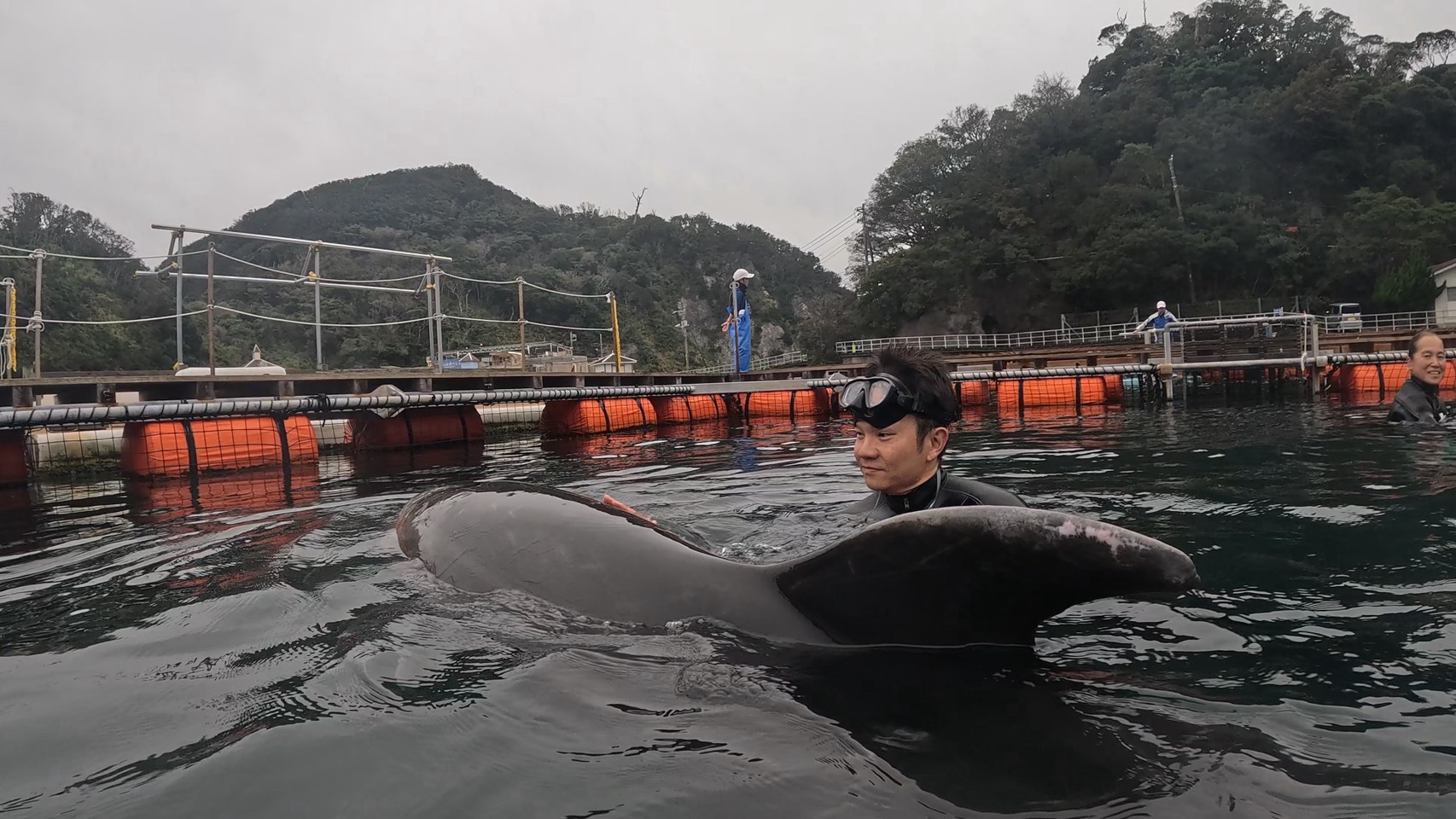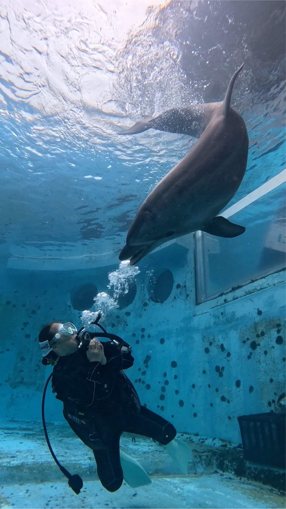 During dolphin diving, I swam with Ace and Leo, who were full of energy again today.