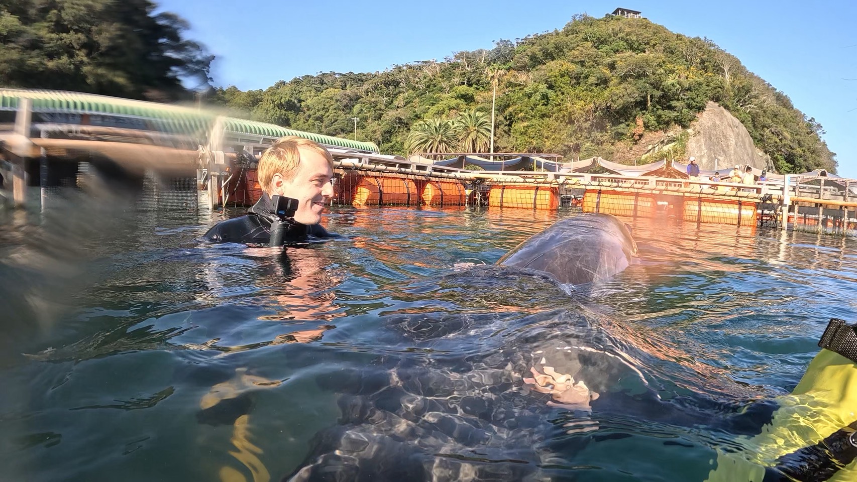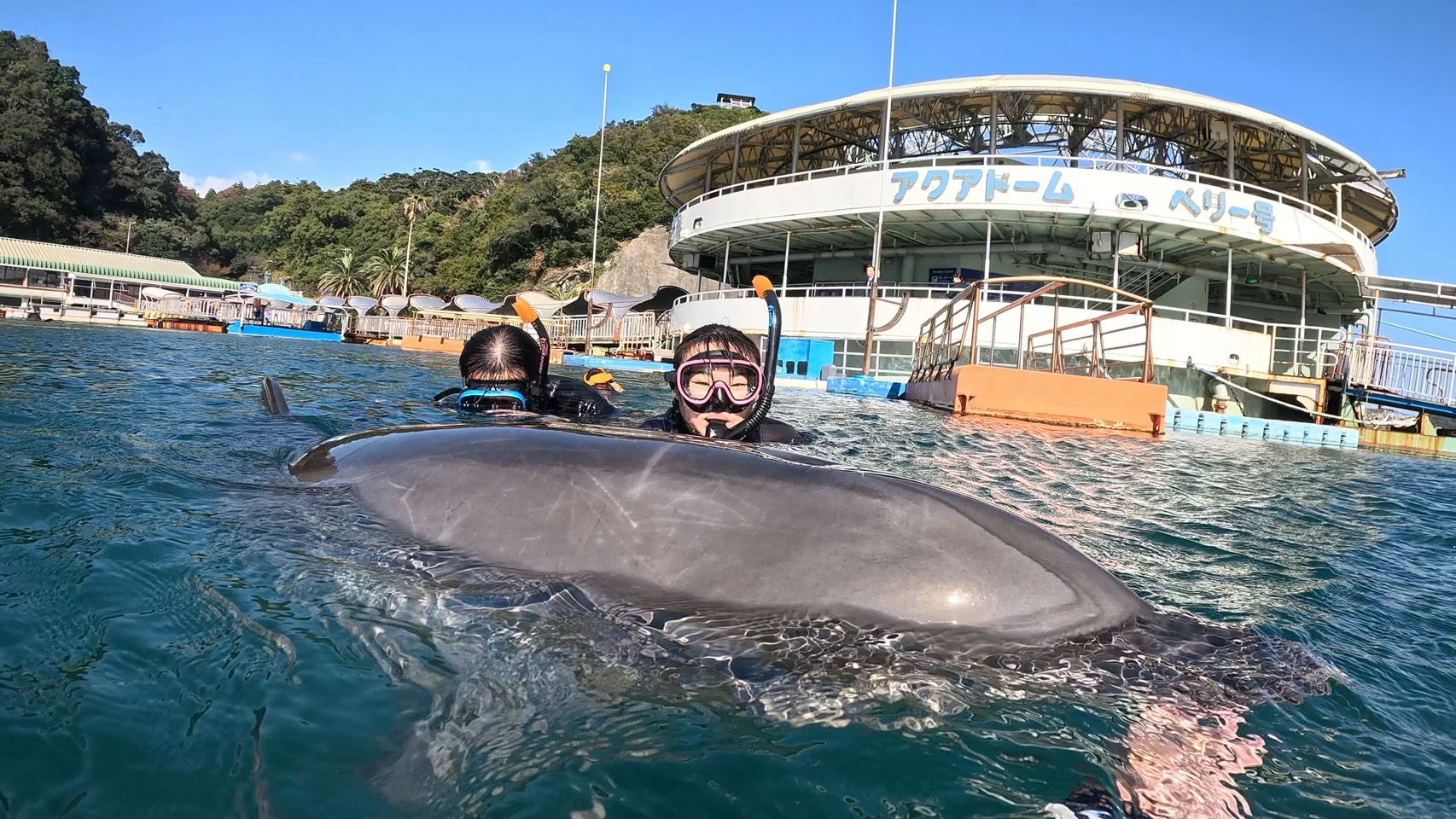 ドルフィンスノーケルではスカイ、エールの2頭と触れ合うことができました!