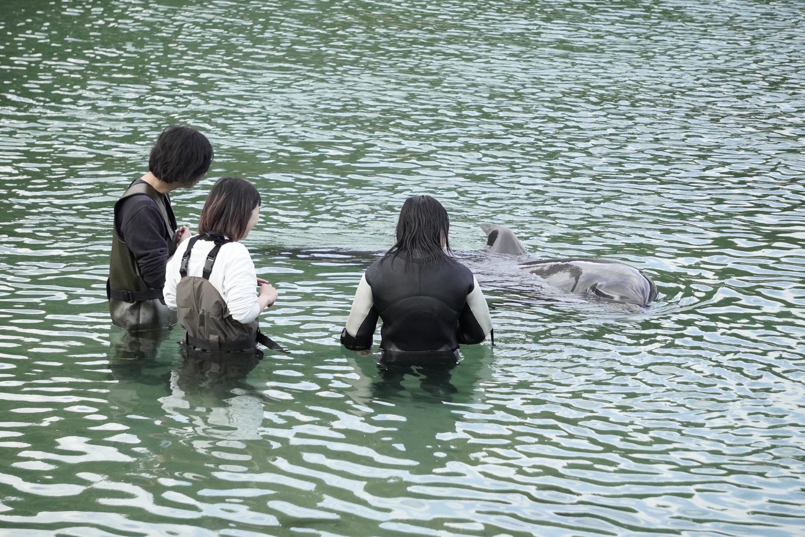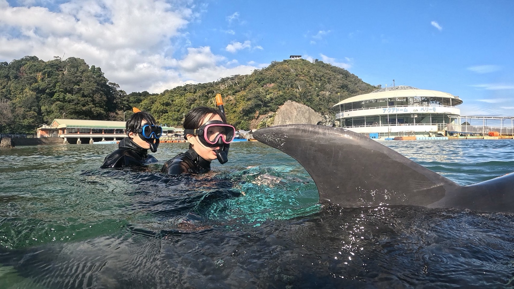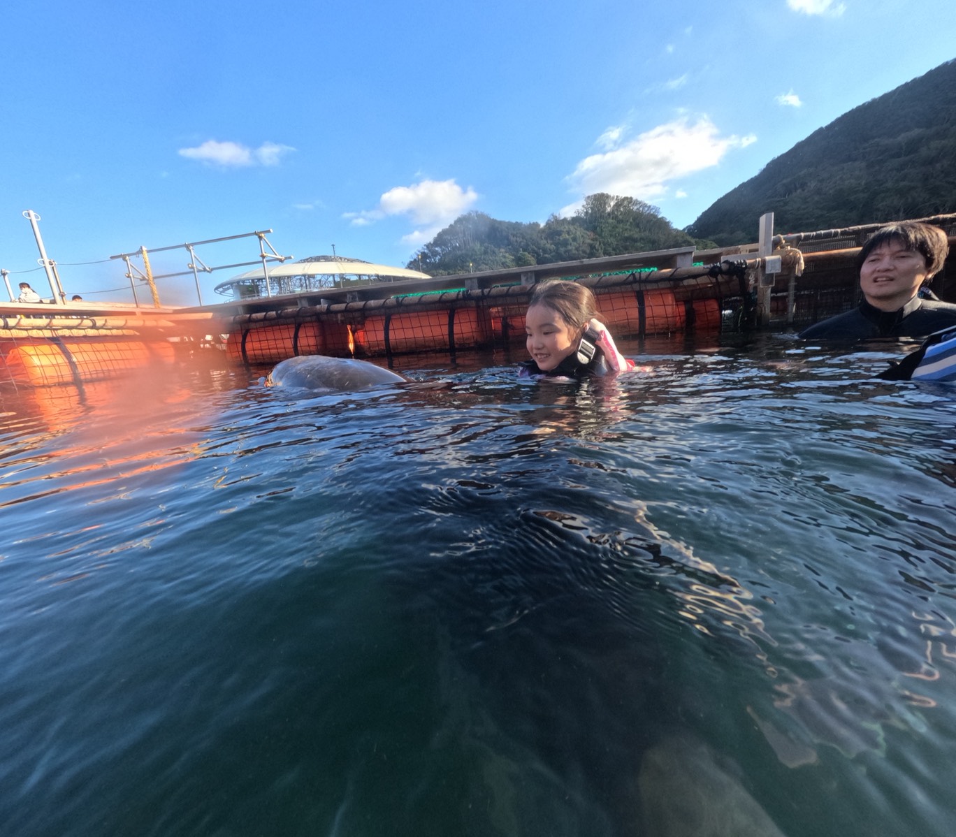 During dolphin snorkeling, Sky and Ran seemed to be asking for attention