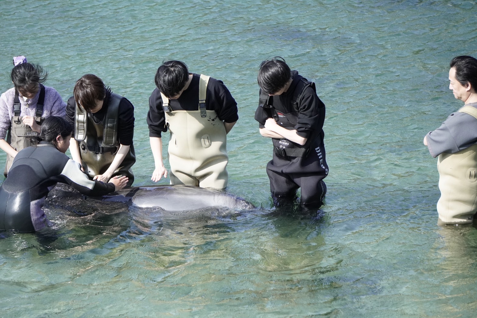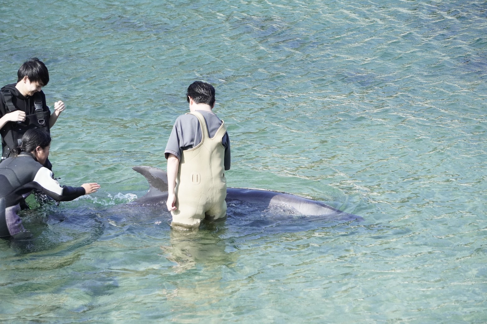 Aile, who usually swims very energetically, seemed to want to play with us today, so she swam a little more gently!
