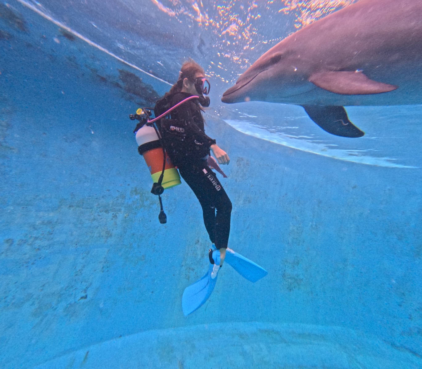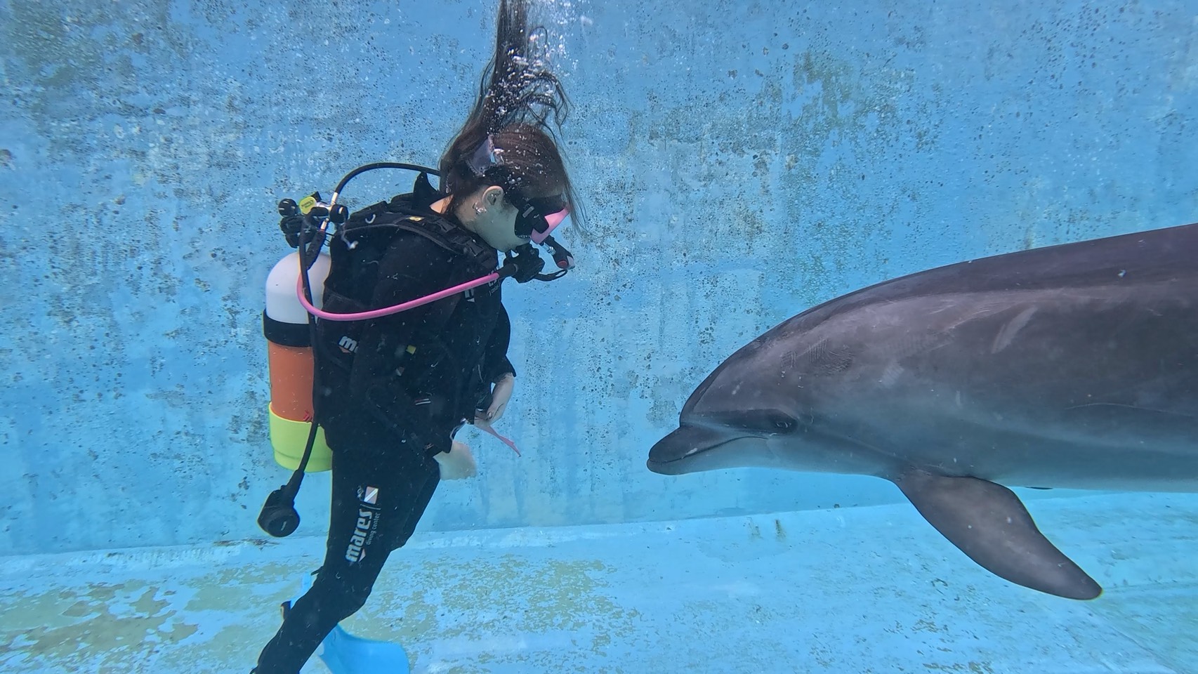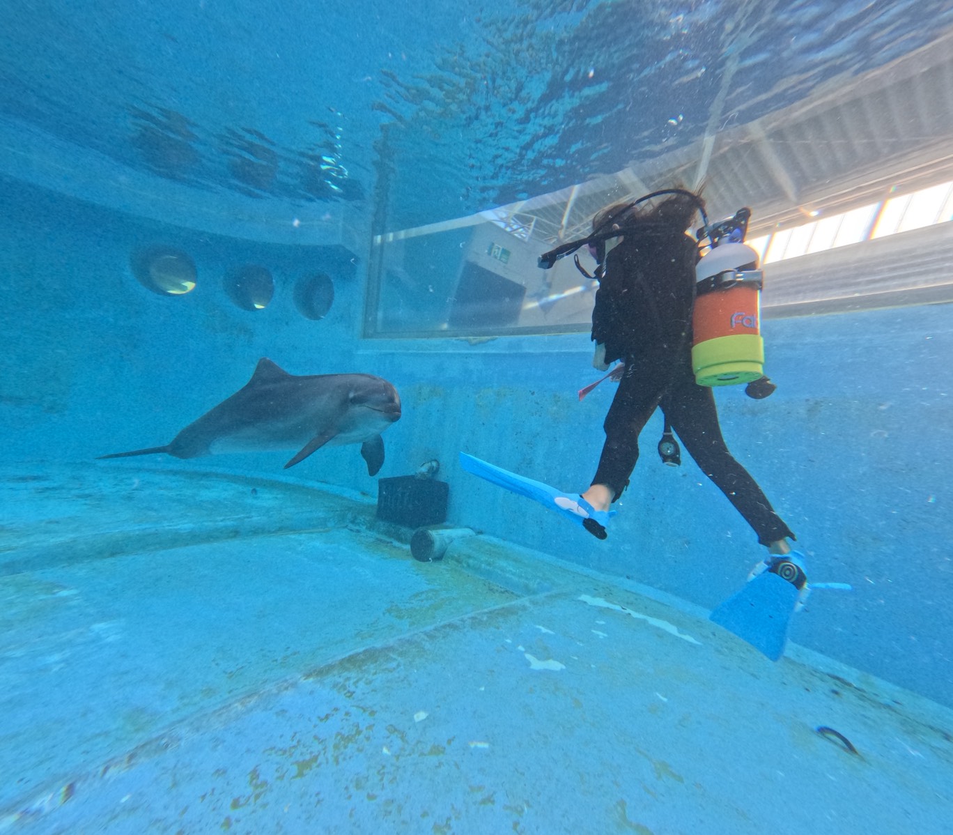 一緒に泳いだり、猛スピードで泳げる様子を披露してくれました🐬