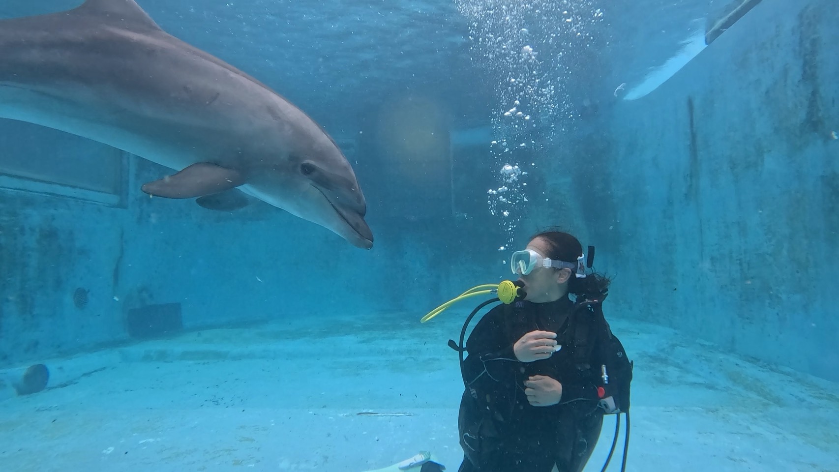 During Dolphin Diving, Leo’s sense of distance was off, and before I knew it, his face was right in front of mine (lol).