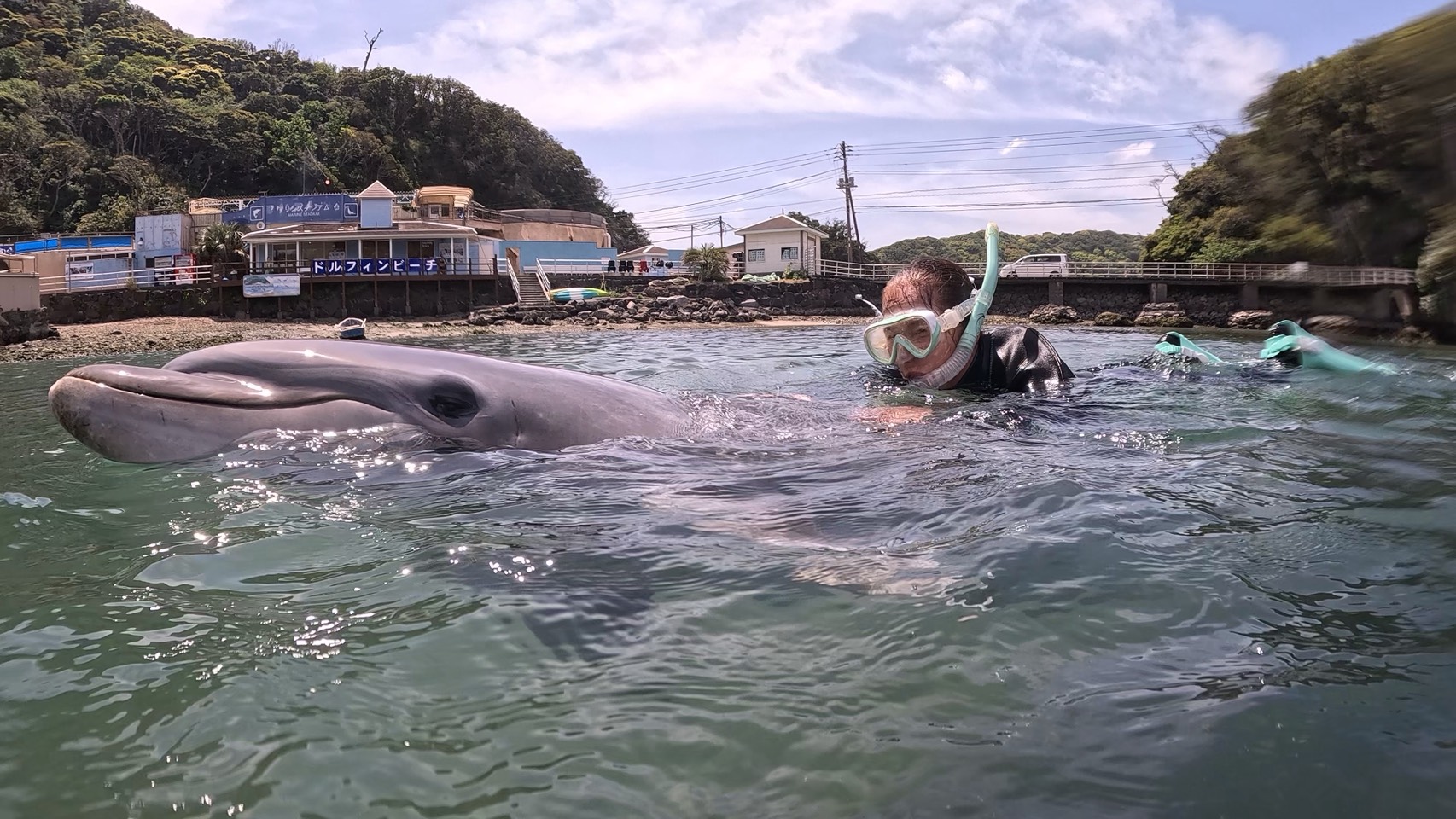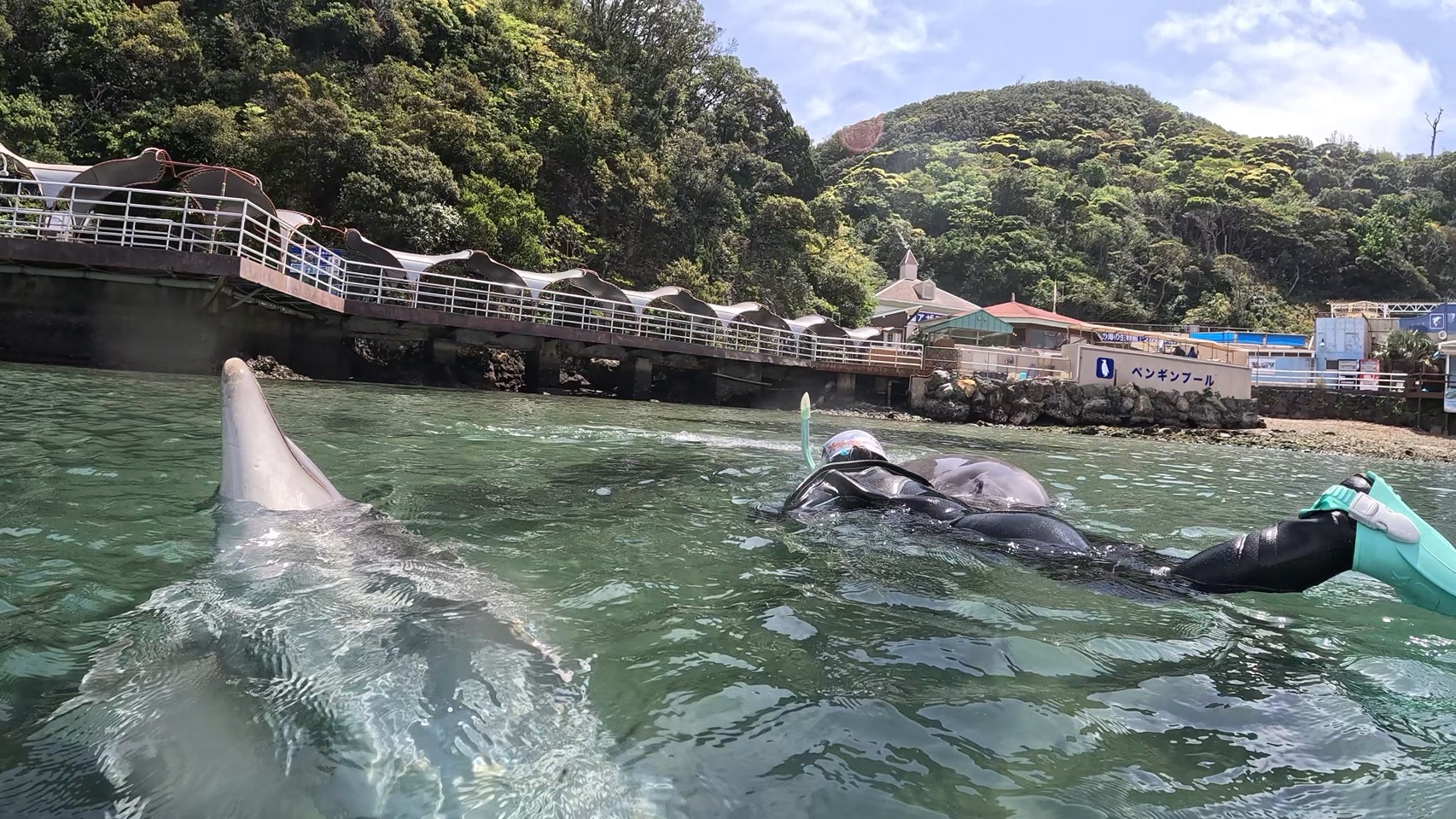 ドルフィンスノーケルでは、ラン、スカイ、ユラナスの3頭が遊びに来てくれました!