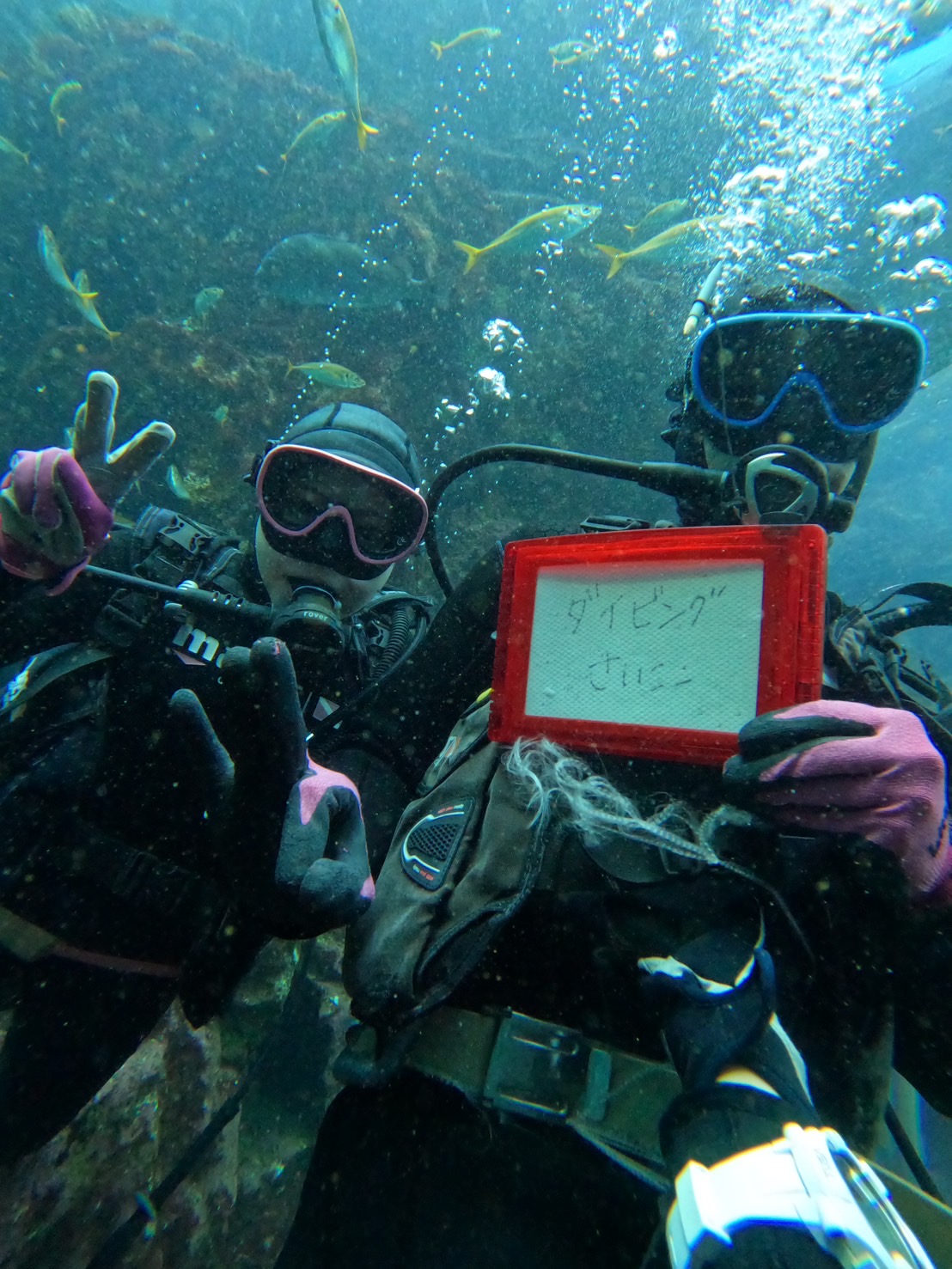 We held a large tank dive! The fish in the tank welcomed us!