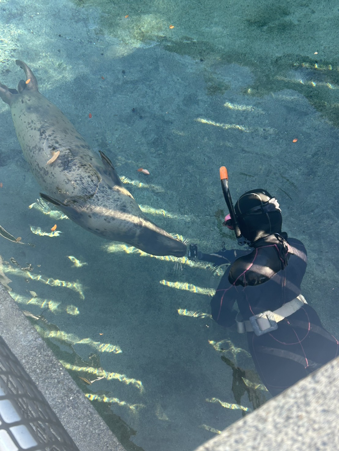 Yesterday, we did dolphin snorkeling and seal underwater watching.