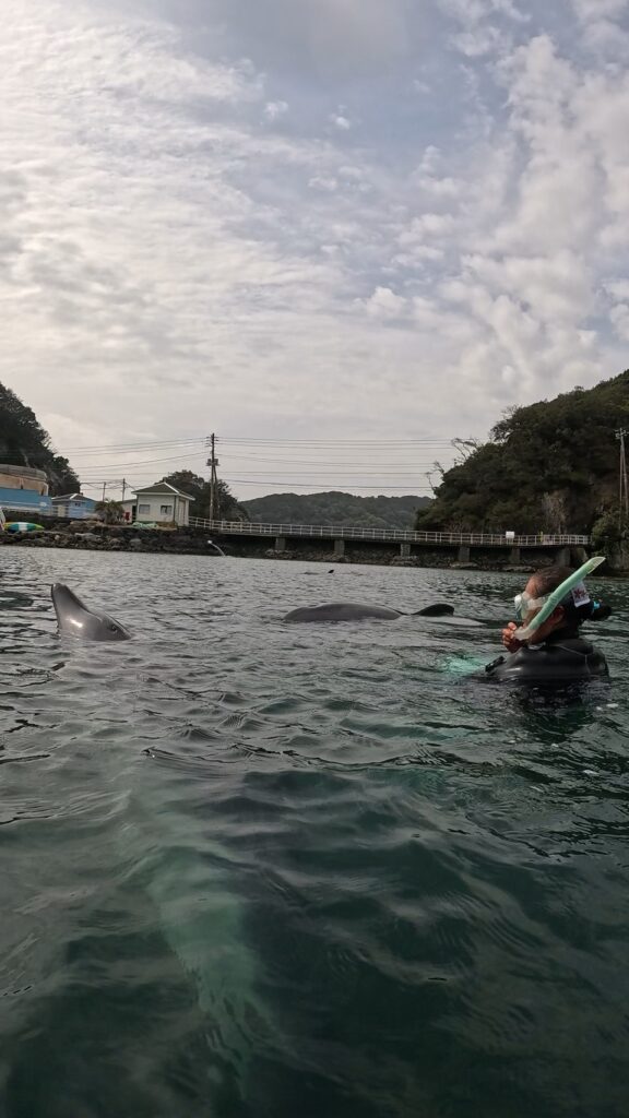 ステージの横で練習していたので何度も尾びれをぶつけてしまっていました?