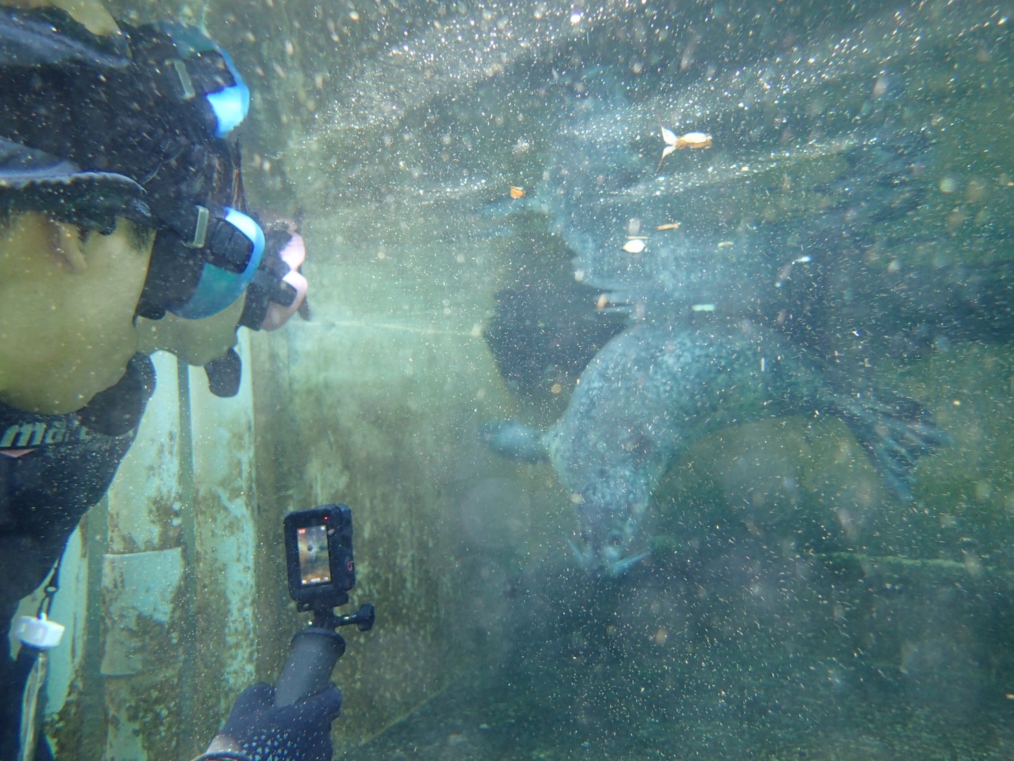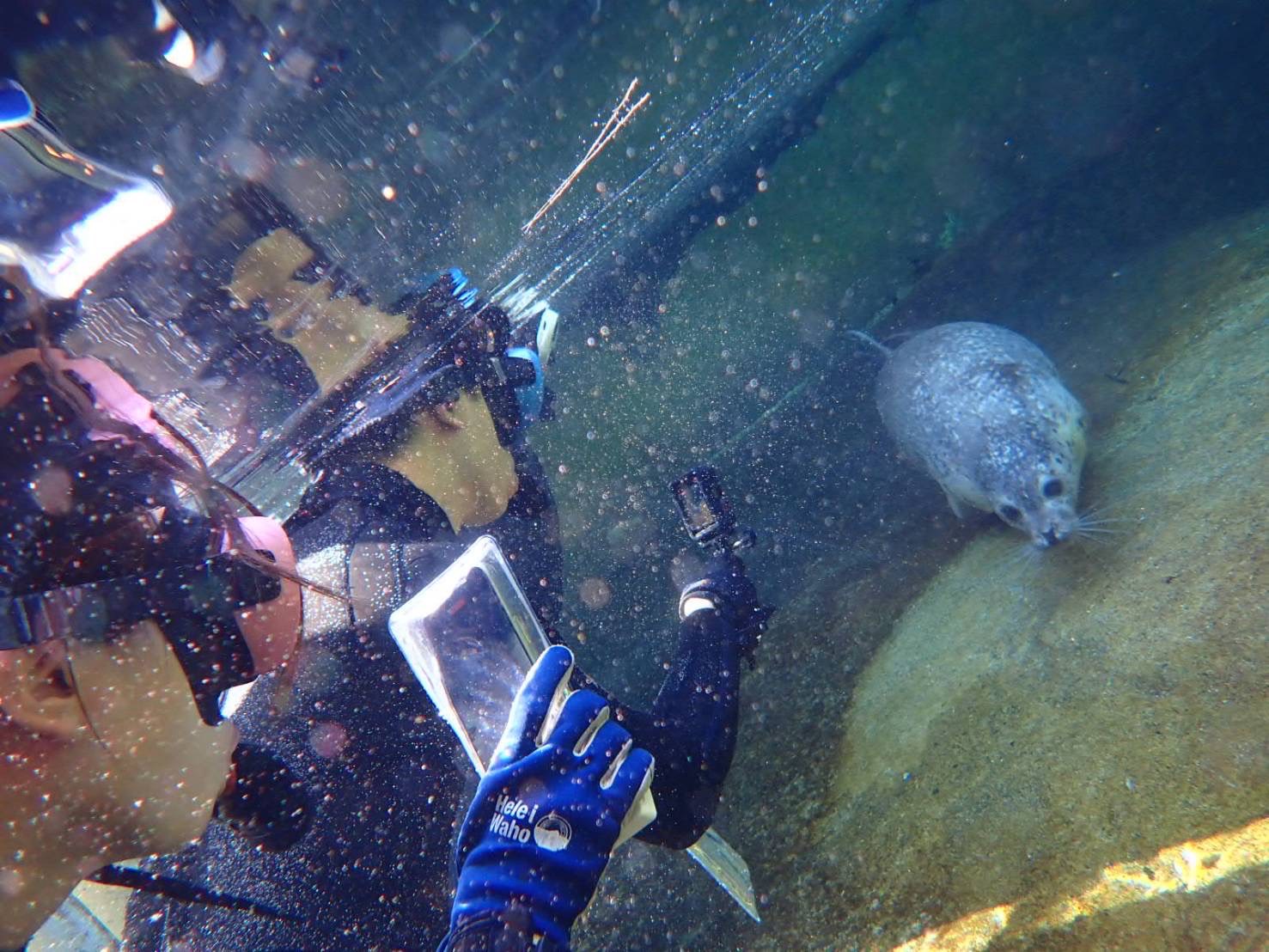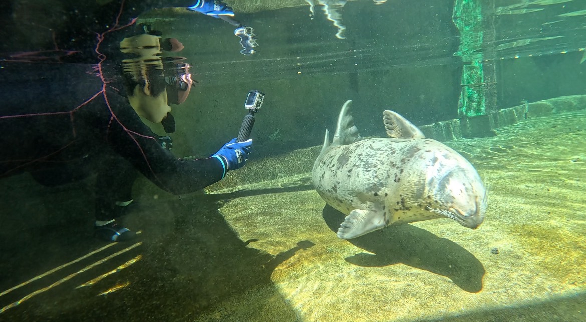 アザラシ水中ウォッチングではカブトが興味深々でとても近くに来てました