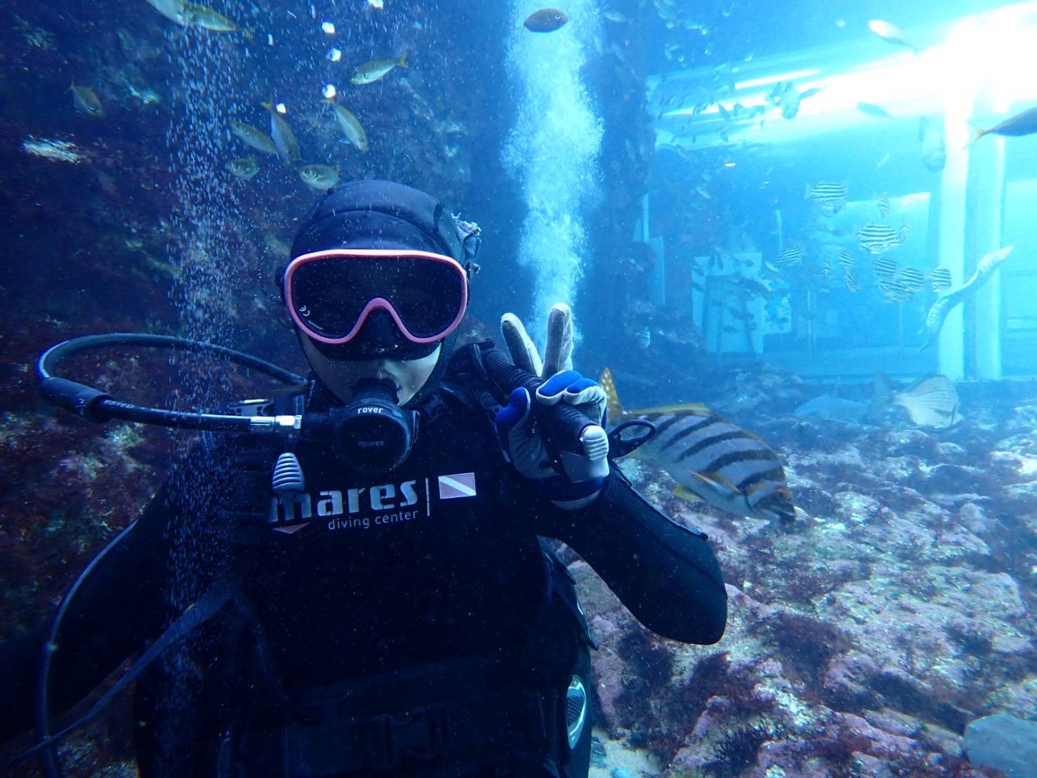 大水槽ダイビングでは初めてでしたがとても上手でした