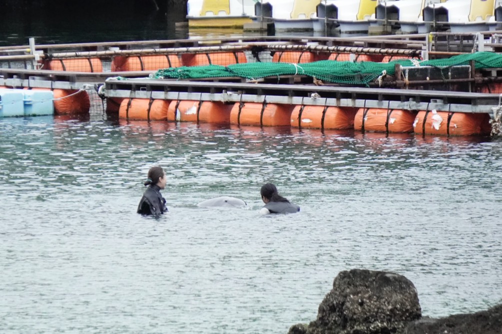 また、スタッフの白いフィンガ気になったのか、ユラナスは静かに後ろを付いて泳ぐ一幕もありました