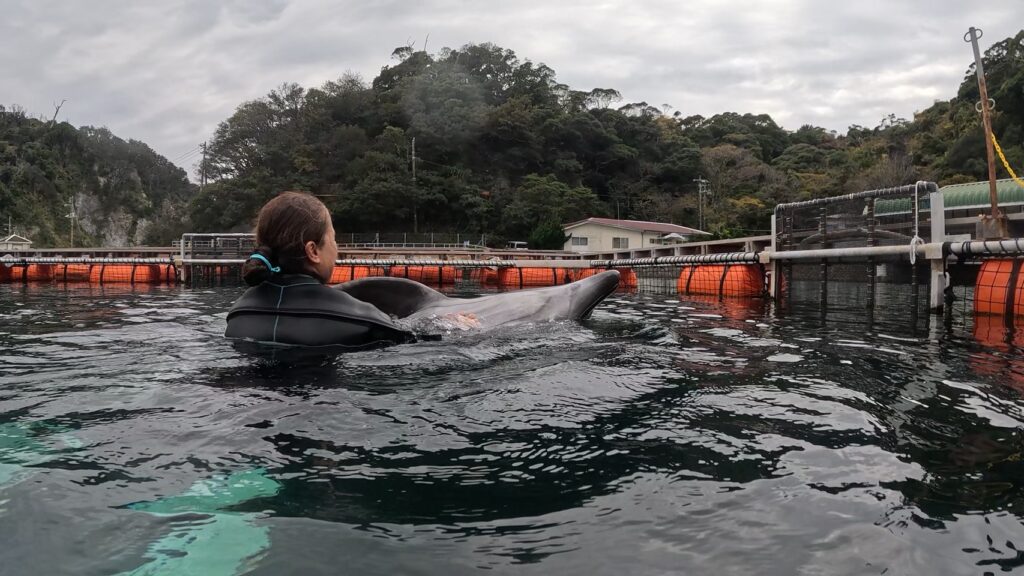 泳いではミカンが戻って来て、また泳いでは戻って来るというような状況でした!